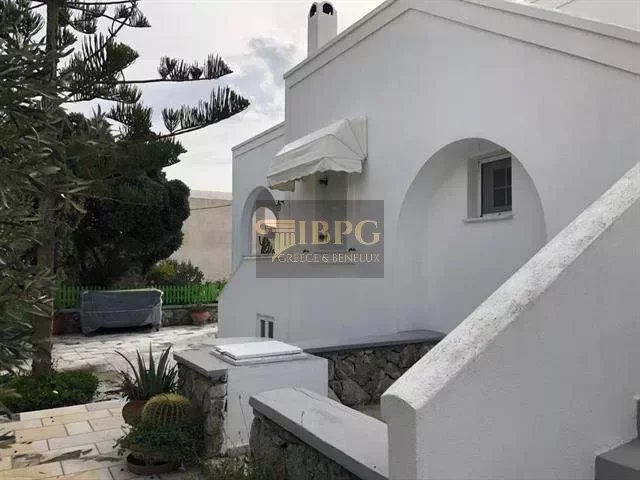 Excellent detached house of 260 sq.m. at Thiras Tower on a plot of 1035 sq.m. consisting of: A) ground floor house of 120 sq.m. 3 bedrooms, 2 bathrooms, kitchen, living room, dining room, large balconies, 2 fireplaces and an elevator that communicates with the underground indoor parking space of 60 sq.m. Airy, bright with unobstructed sea views. B) Underground house of 30 sq.m.,1 bedroom, bathroom, living room and kitchen with large yard and sea view C) Underground house of 50sqm. 2 bedrooms, bathroom, living room and kitchen with large yard and sea view. Paved courtyard and a garden with barbecue. Potential for the building of 280 extra sq.m. The property is within the village in a quiet neighborhood very close to the square.