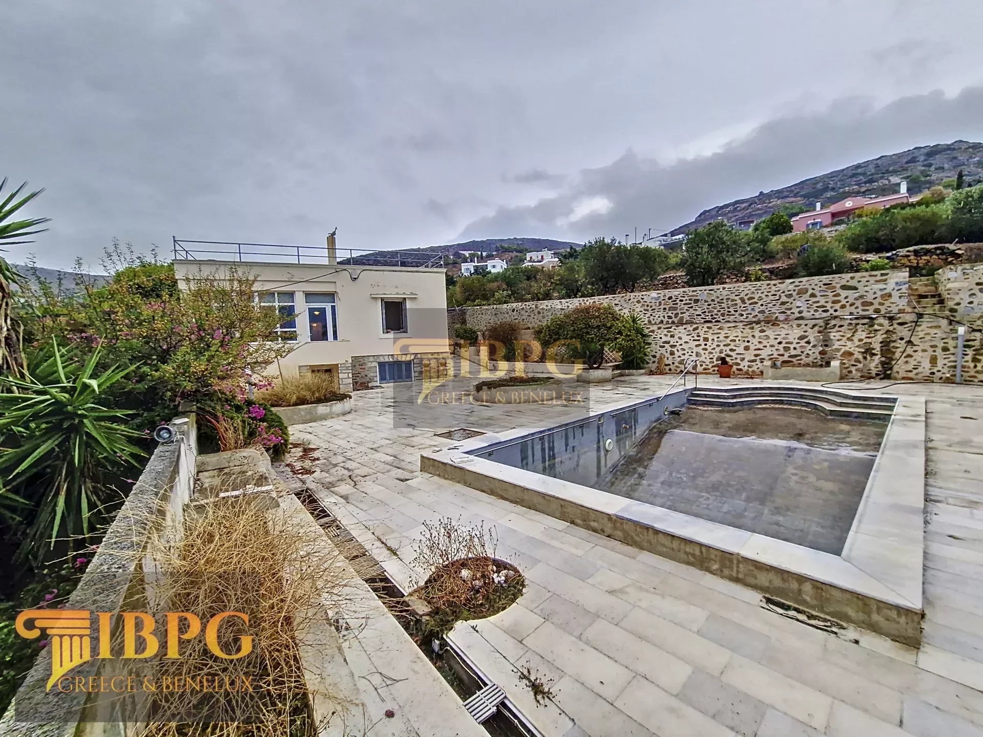 Πρόκειται για ένα μοναδικό νεοκλασικό σπίτι στη Σύρο, με συνολικό εμβαδόν 230 τετραγωνικά μέτρα, που βρίσκεται σε ένα εκτεταμένο οικόπεδο 6000 τετραγωνικών μέτρων. Το υπόλοιπο δόμησης φτάνει τα 2000 τετραγωνικά μέτρα, αφού το οικόπεδο εμπίπτει εντός του σχεδίου. Η Βίλα περιλαμβάνει μια πανέμορφη πισίνα και έναν εκτεταμένο κήπο, προσφέροντας πανοραμική θέα στη θάλασσα. Μια εξαιρετική ευκαιρία για όσους αναζητούν τη συνδυαστική πολυτέλεια του νεοκλασικού στιλ με τον επιπλέον χώρο και την ελευθερία του μεγάλου οικοπέδου.